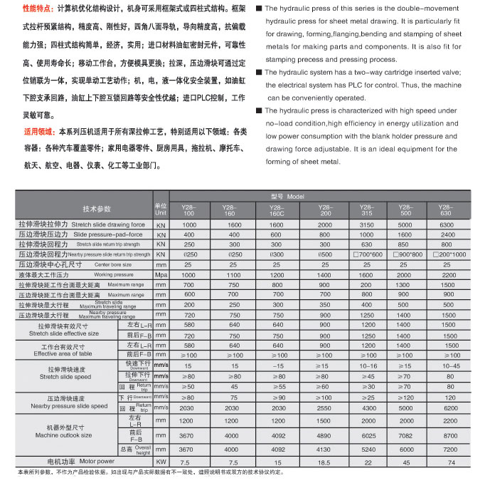 Y28-四柱式雙動薄板拉伸液壓機